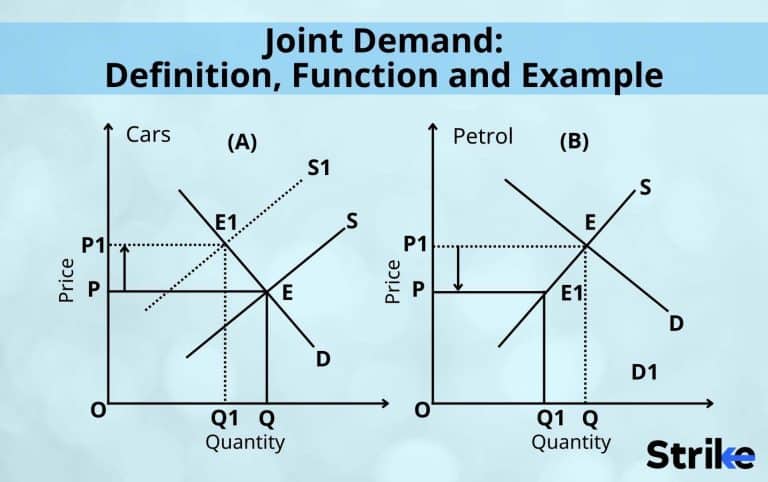 Example of joint demand would be when petrol prices increase and shift leftward. People use less petrol by driving less or switching to more fuel-efficient cars; as a result, car demand decreases while petrol demands increase as automobile prices decline; this causes both demands to move in the same direction and are jointly determined.
