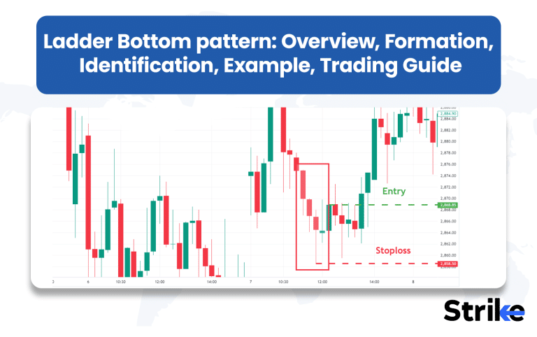 The fifth candle is the key to the Ladder Bottom. It emerges as a strong bullish candle that closes higher than the fourth candle. Ideally, it pushes decisively above the midpoint of the third candle, confirming a change in sentiment. Traders often look for long lower wicks in both the fourth and fifth candles, since these shadows show that buyers are stepping in aggressively at lower levels.